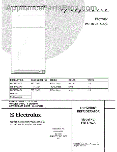 Parts for Frigidaire FRT17A2AQ3: 01 - Cover Parts