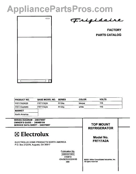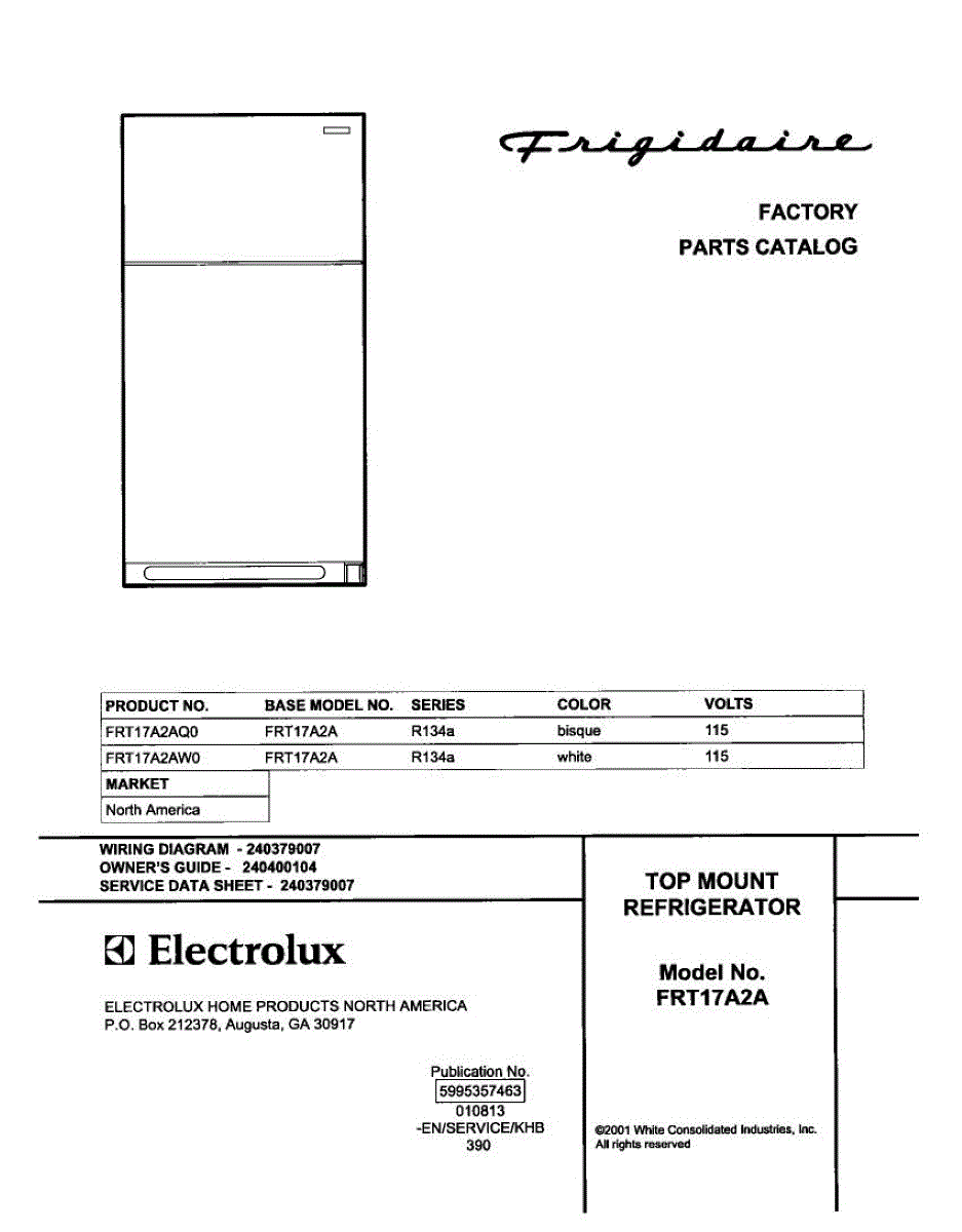 Parts for Frigidaire FRT17A2AW0: 01 - Cover Parts