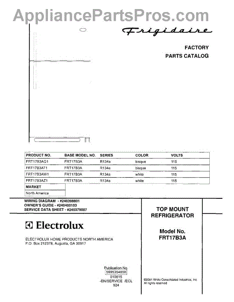 Parts for Frigidaire FRT17B3AT1: 01 - Cover Parts