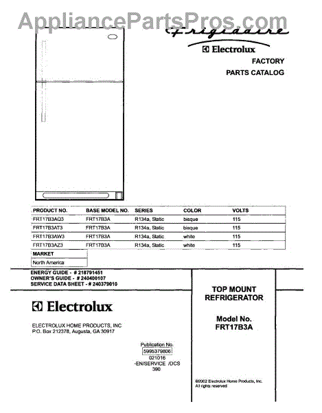 Parts for Frigidaire FRT17B3AT3: 01 - Cover Parts
