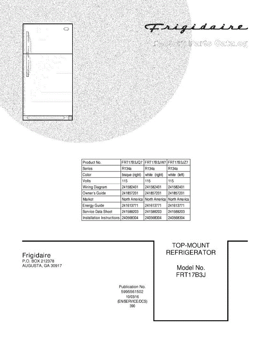 Parts for Frigidaire FRT17B3JW7: 01 - Cover Parts