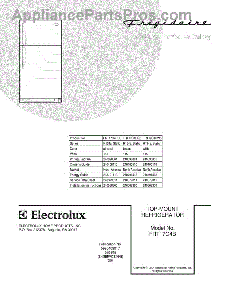 Parts for FRT17G4BW3