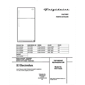 Parts for Frigidaire FRT17G5AW0: 01 - Cover Parts