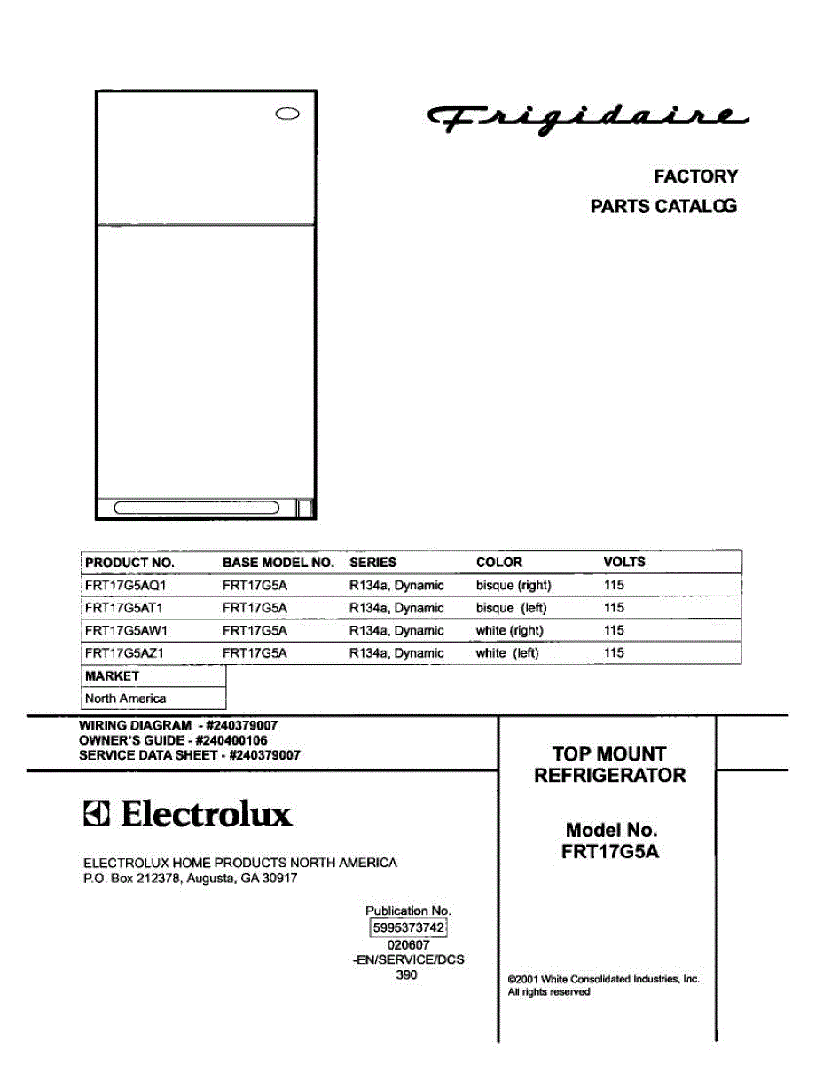 Parts for Frigidaire FRT17G5AW1: 01 - Cover Parts