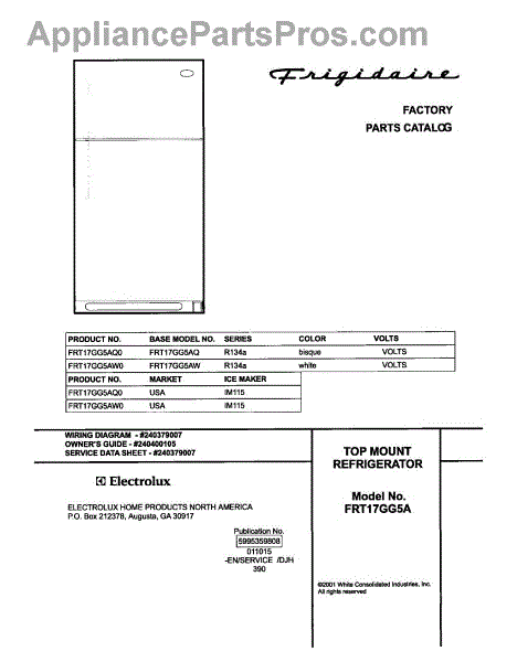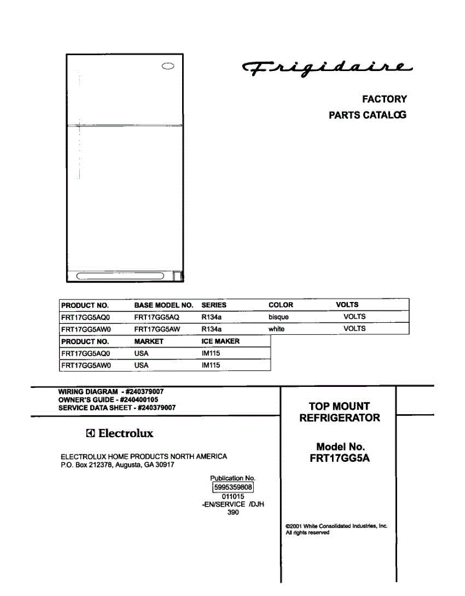 Parts for Frigidaire FRT17GG5AQ0: 01 - Cover Parts