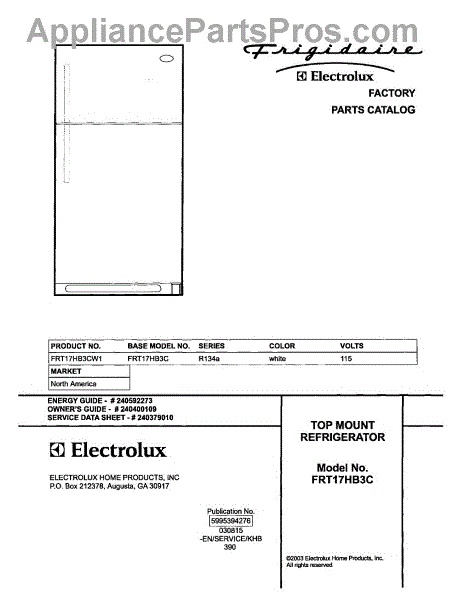 Parts for Frigidaire FRT17HB3CW1: 01 - Cover Parts