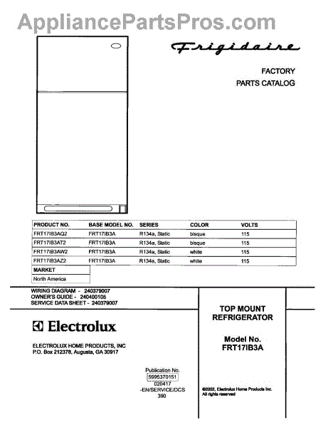 Parts for Frigidaire FRT17IB3AW2: 01 - Cover Parts