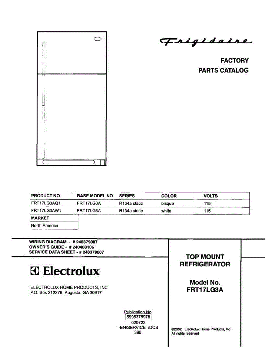 Parts for Frigidaire FRT17LG3AQ1: 01 - Cover Parts