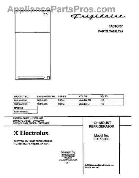 Parts for Frigidaire FRT185BSB3: 01 - Cover Parts