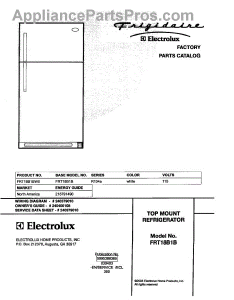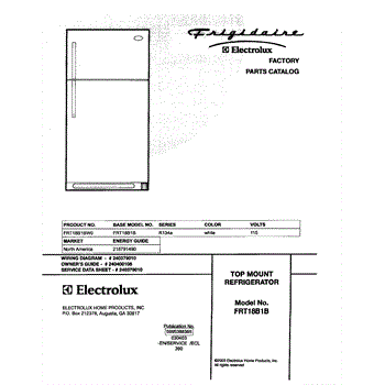 Parts for Frigidaire FRT18B1BW0: 01 - Cover Parts