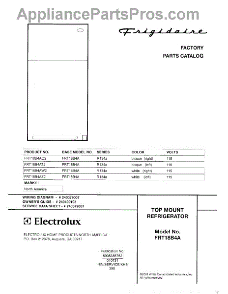 Parts for Frigidaire FRT18B4AQ2: 01 - Cover Parts