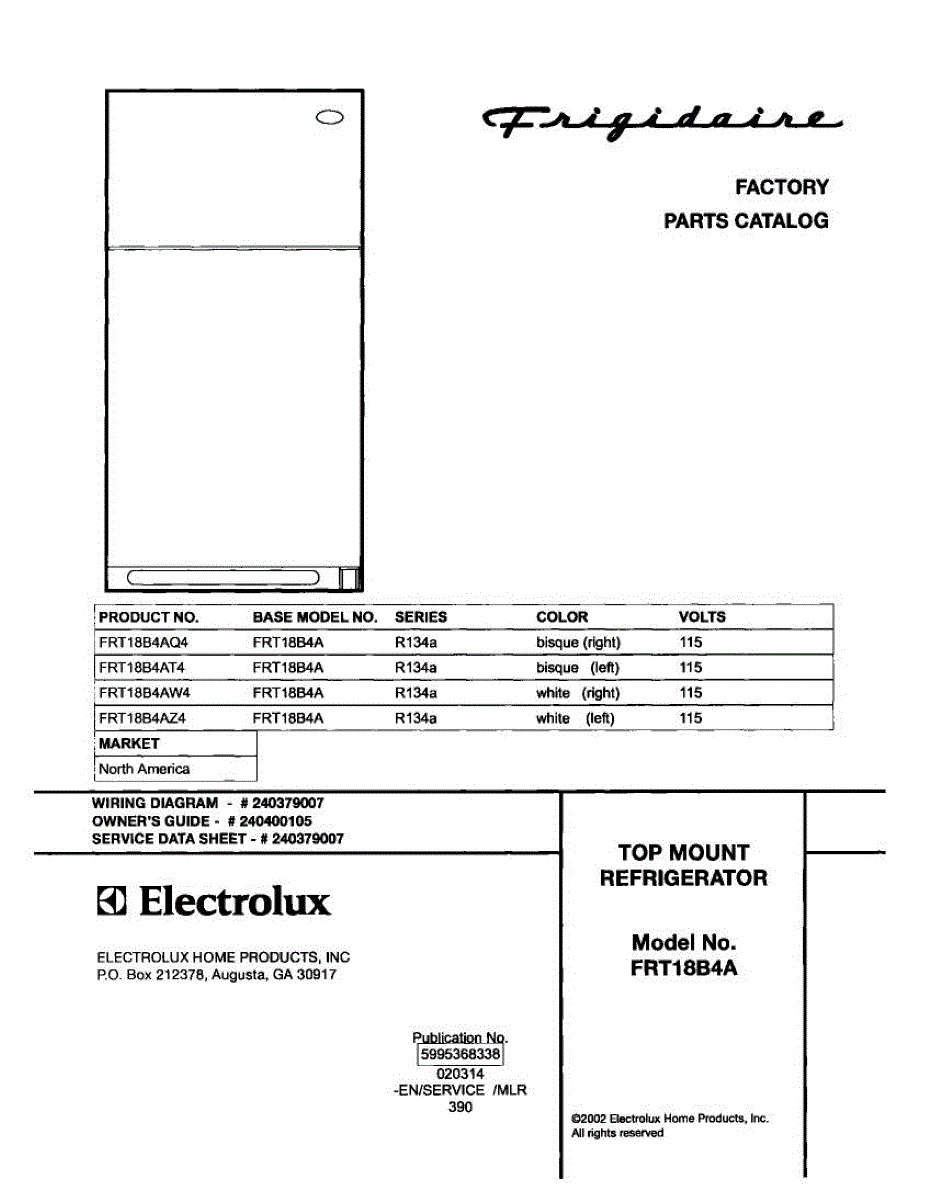 Parts for Frigidaire FRT18B4AQ4: 01 - Cover Parts