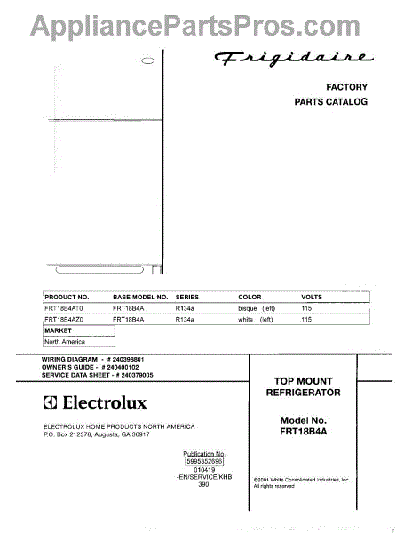 Parts for Frigidaire FRT18B4AT0: 01 - Cover Parts