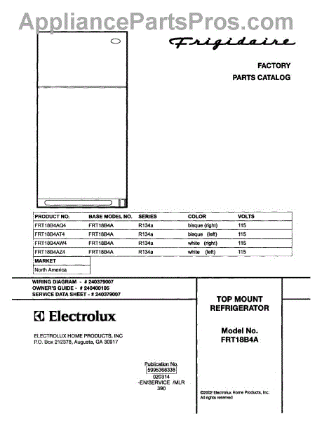 Parts for Frigidaire FRT18B4AT4: 01 - Cover Parts