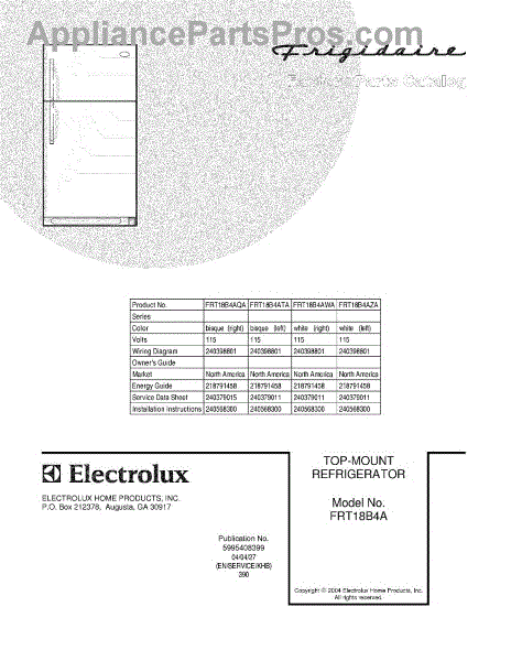 Parts for Frigidaire FRT18B4AWA: 01 - Cover Parts