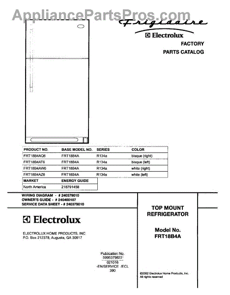 Parts for Frigidaire FRT18B4AZ6: 01 - Cover Parts