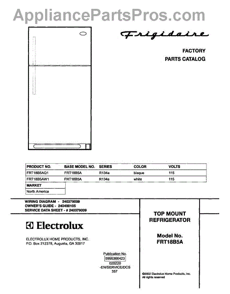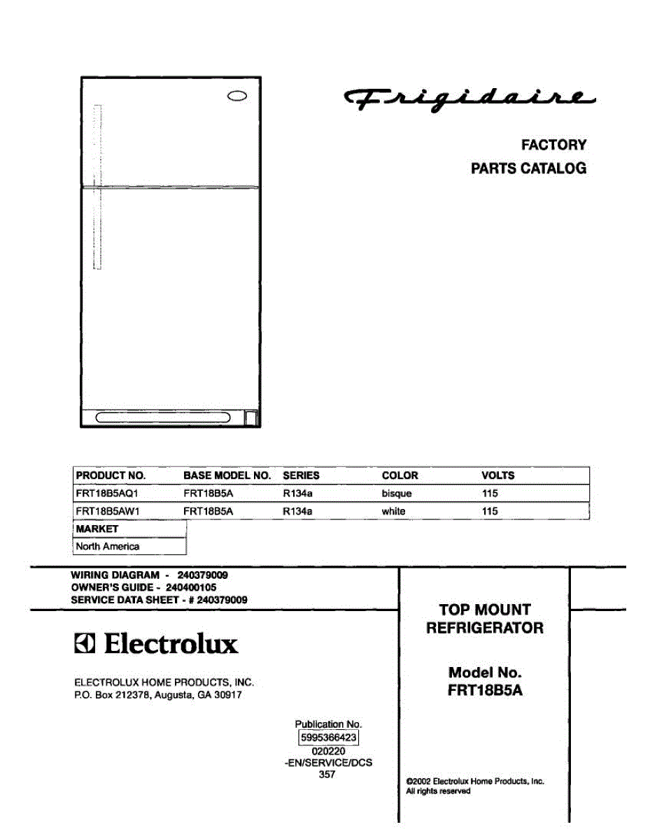 Parts for Frigidaire FRT18B5AW1: 01 - Cover Parts