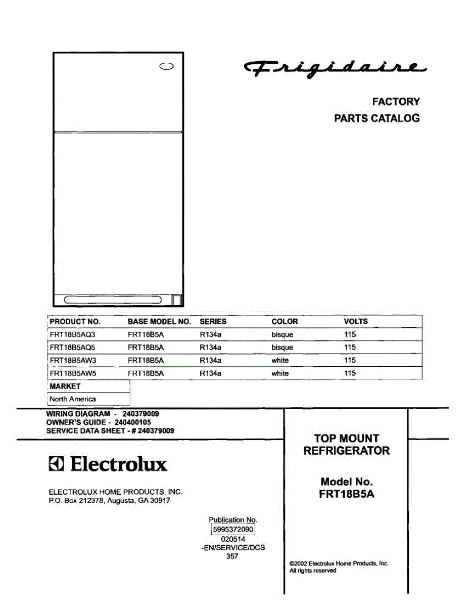 Parts for Frigidaire FRT18B5AW5: 01 - Cover Parts