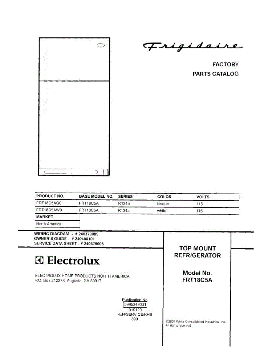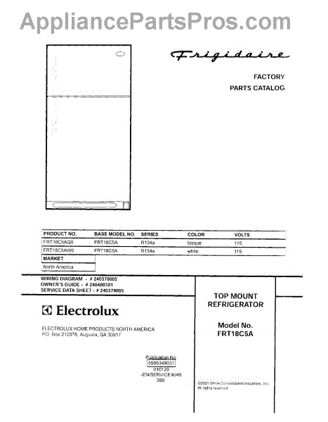 Parts for Frigidaire FRT18C5AW0: 01 - Cover Parts