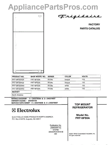 Parts for Frigidaire FRT18FS5AQ0: 01 - Cover Parts