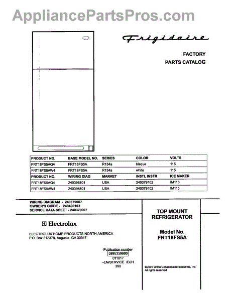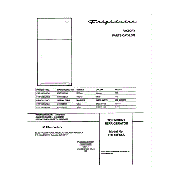 Parts for Frigidaire FRT18FS5AW4: 01 - Cover Parts