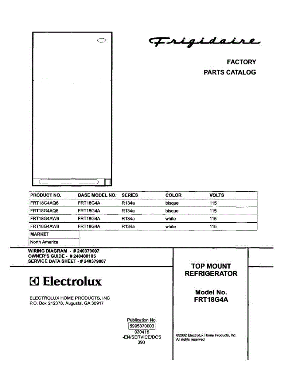 Parts for Frigidaire FRT18G4AQ6: 01 - Cover Parts