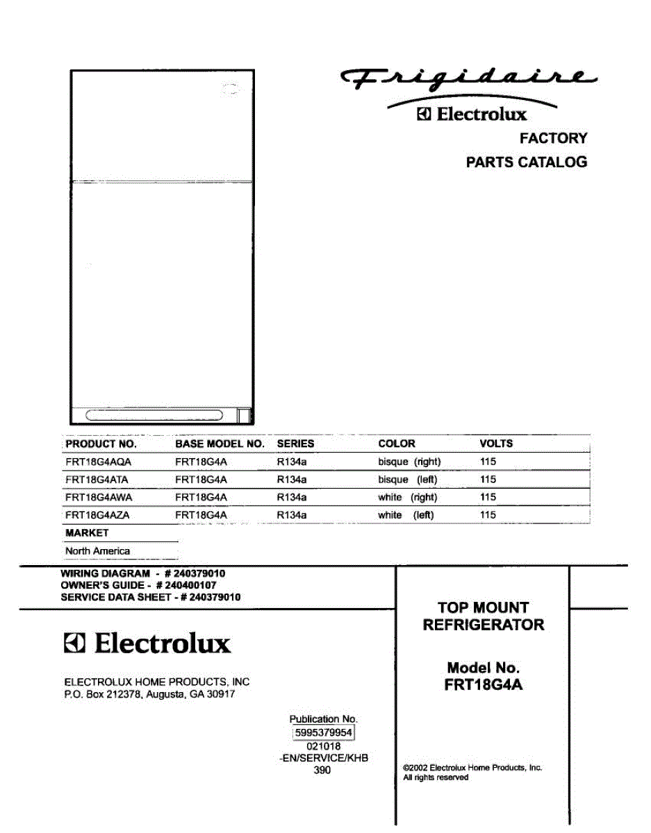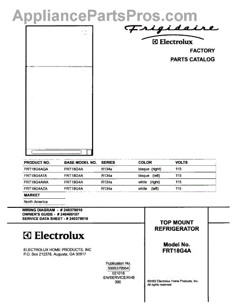 Parts for Frigidaire FRT18G4AWA: 01 - Cover Parts