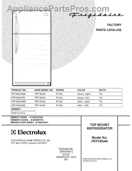 Parts for Frigidaire FRT18G4AWB: 01 - Cover Parts