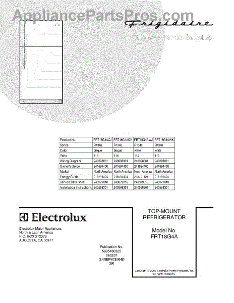 Parts for Frigidaire FRT18G4AWK: 01 - Cover Parts