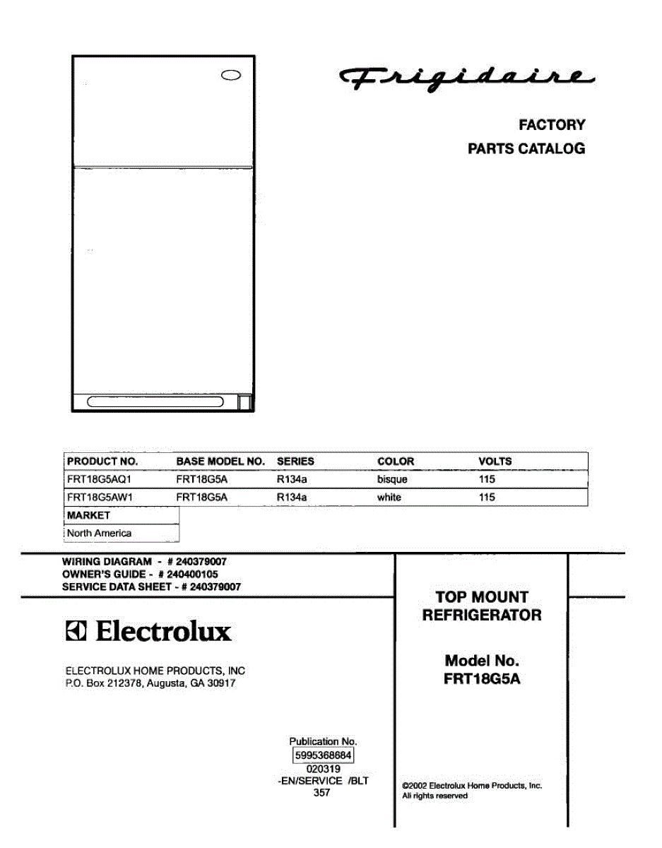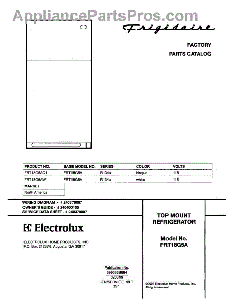 Parts for Frigidaire FRT18G5AQ1: 01 - Cover Parts