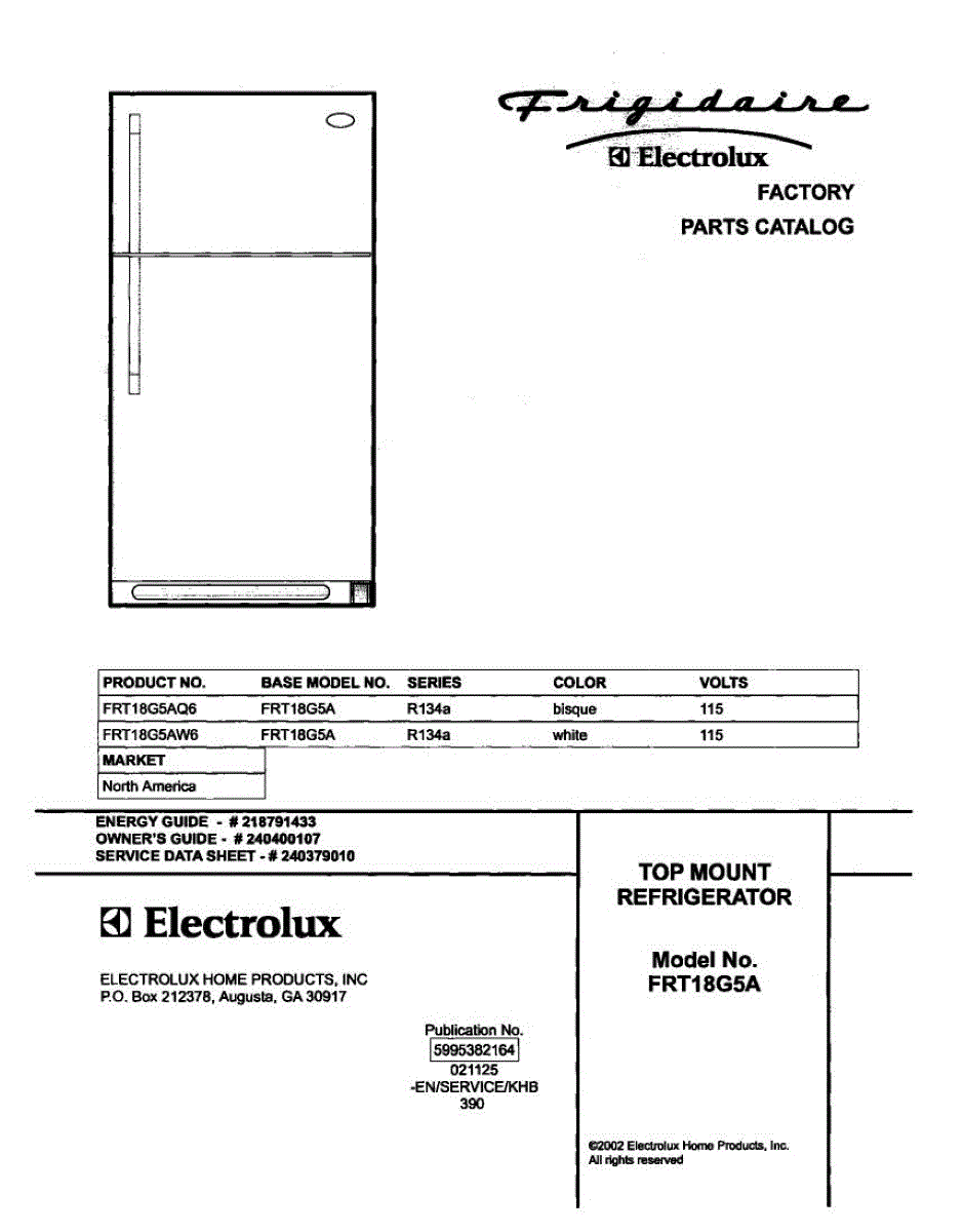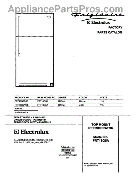 Parts for Frigidaire FRT18G5AQ6: 01 - Cover Parts