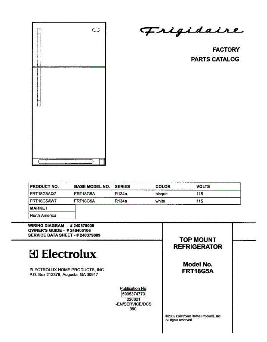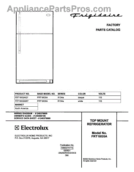 Parts for Frigidaire FRT18G5AW7: 01 - Cover Parts