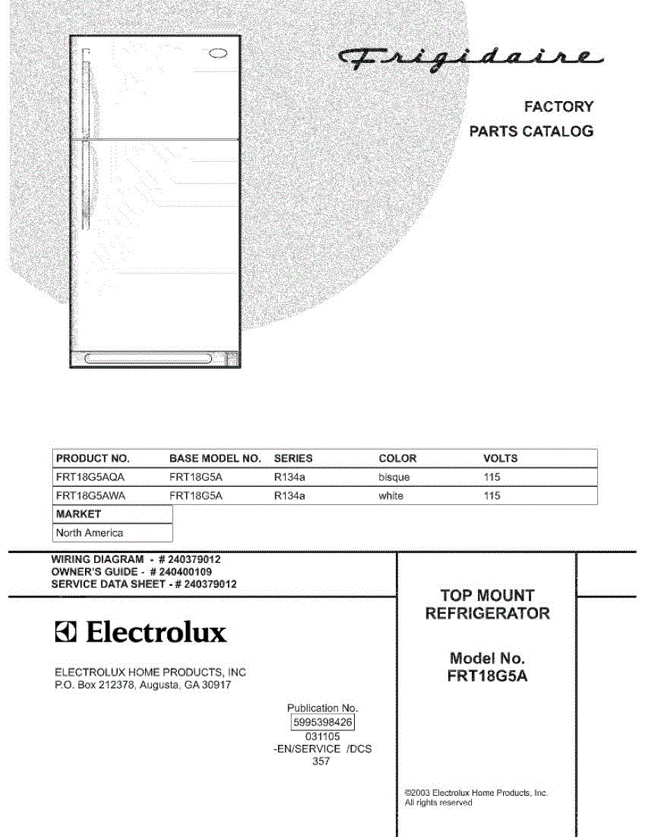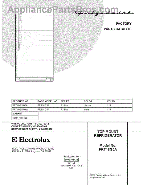 Parts for Frigidaire FRT18G5AWA: 01 - Cover Parts