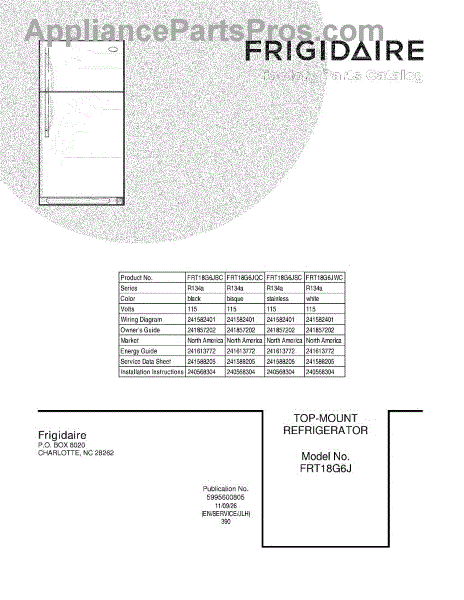 Parts for Frigidaire FRT18G6JWC: 01 - Cover Parts