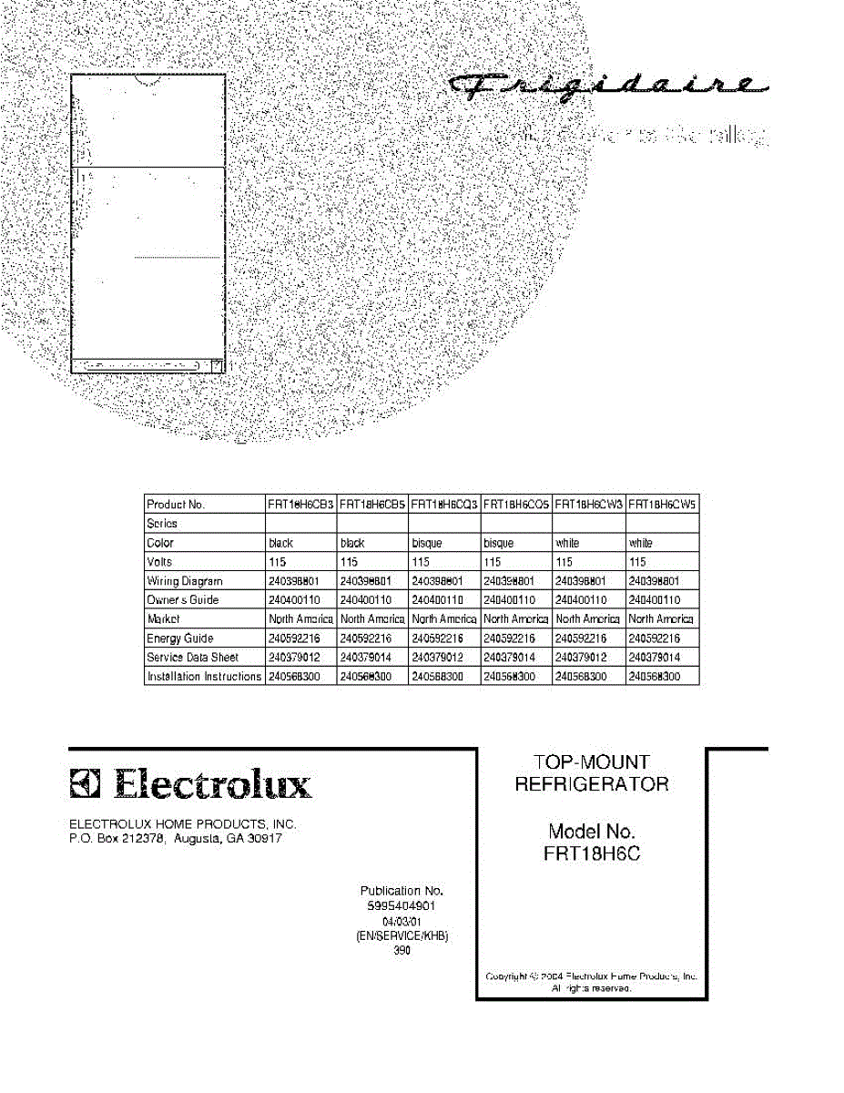Parts for Frigidaire FRT18H6CQ3: 01 - Cover Parts