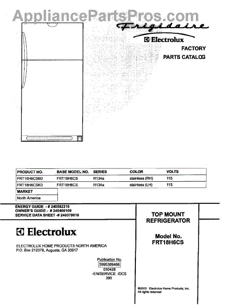 Parts for Frigidaire FRT18H6CSB0: 01 - Cover Parts