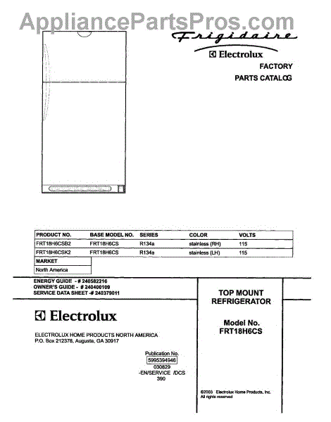 Parts for Frigidaire FRT18H6CSK2: 01 - Cover Parts
