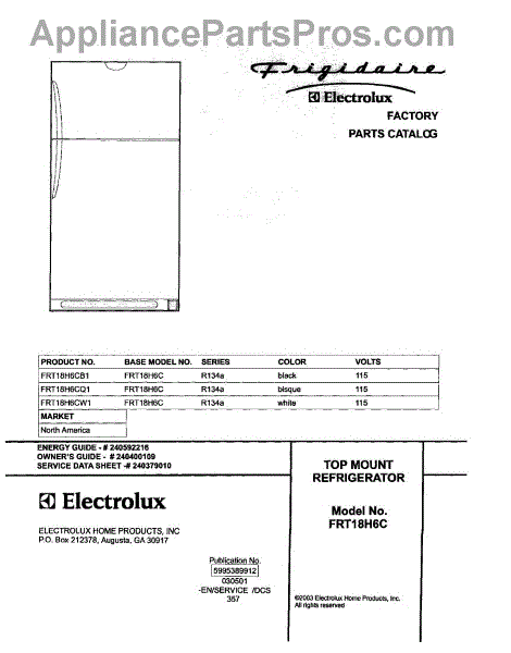 Parts for Frigidaire FRT18H6CW1: 01 - Cover Parts