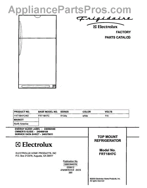 Parts for Frigidaire FRT18H7CW2: 01 - Cover Parts