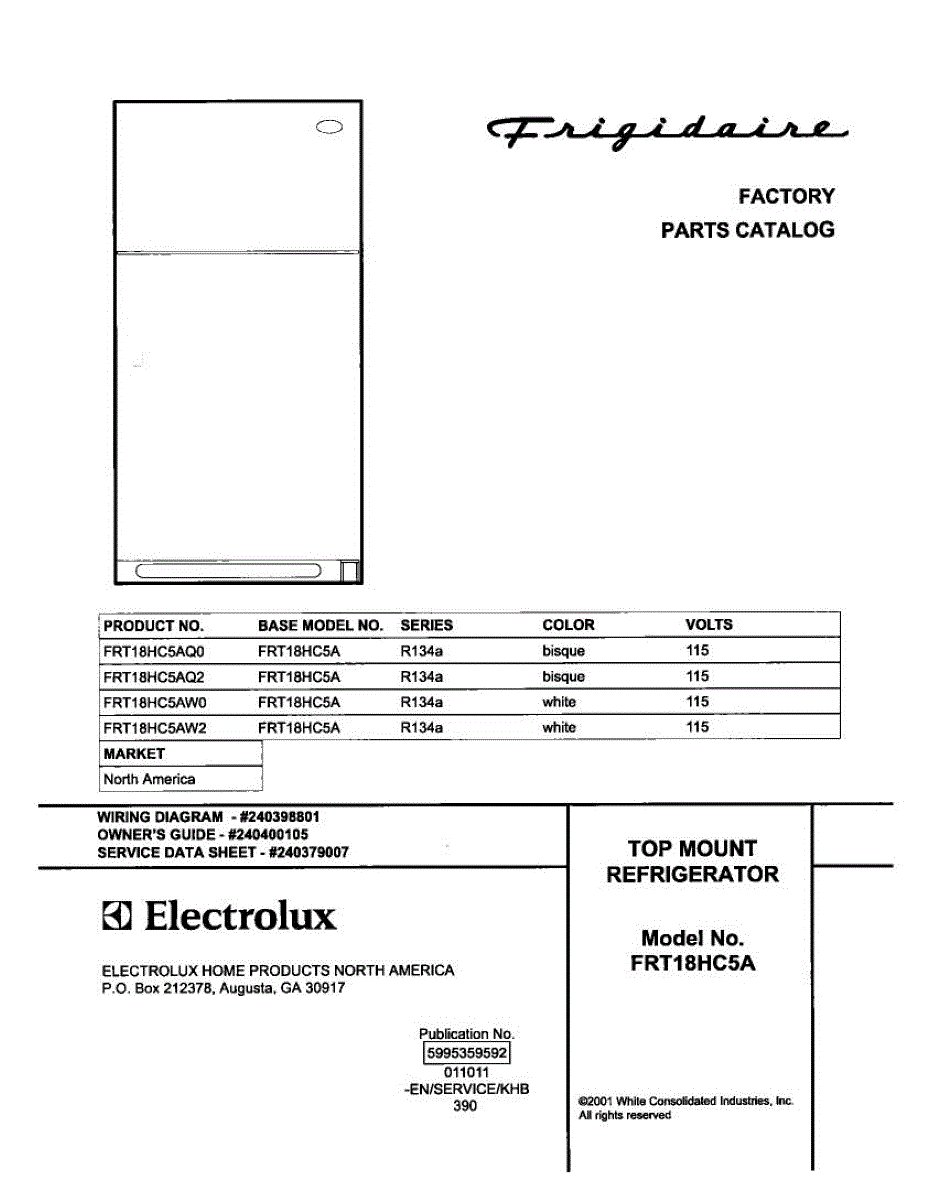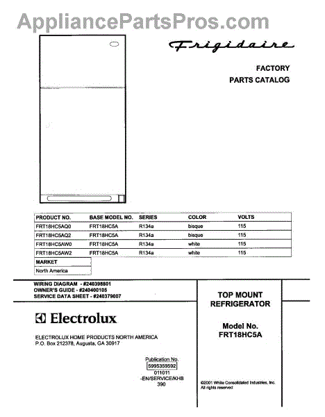 Parts for Frigidaire FRT18HC5AW0: 01 - Cover Parts