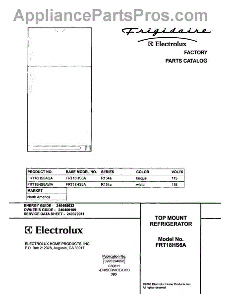 Parts for Frigidaire FRT18HS6AQA: 01 - Cover Parts
