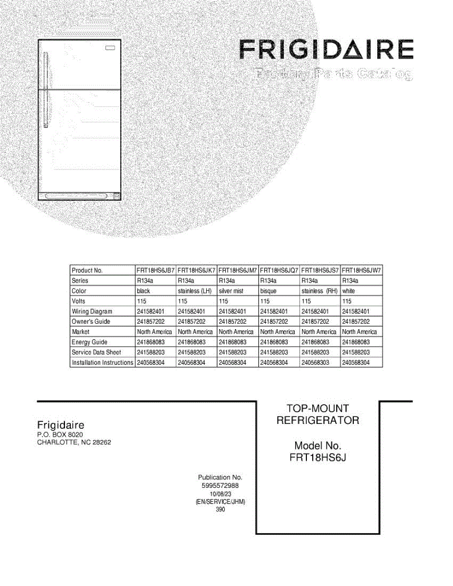 Parts for Frigidaire FRT18HS6JQ7: 01 - Cover Parts