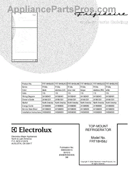 Parts for Frigidaire FRT18HS6JS3: 01 - Cover Parts