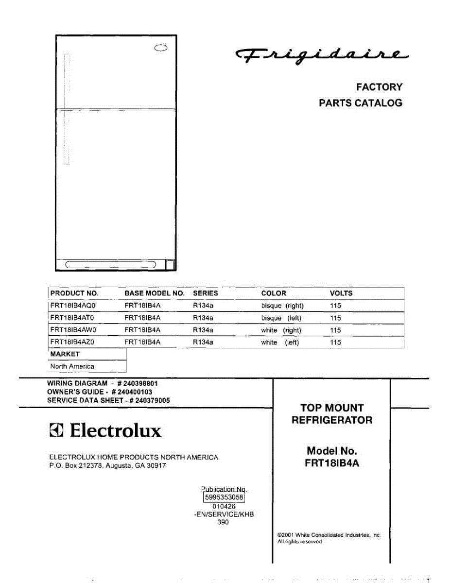 Parts for Frigidaire FRT18IB4AQ0: 01 - Cover Parts