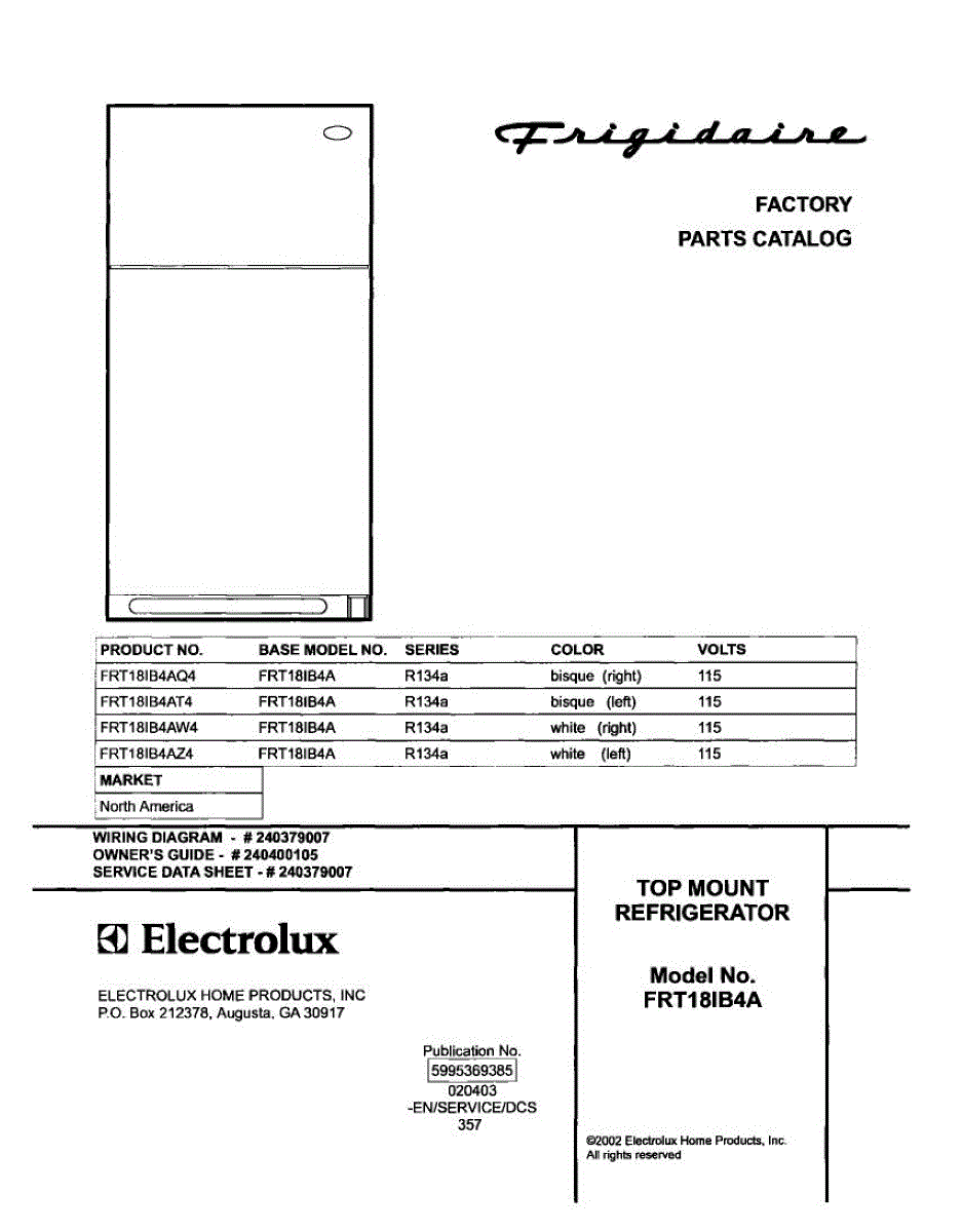 Parts for Frigidaire FRT18IB4AQ4: 01 - Cover Parts