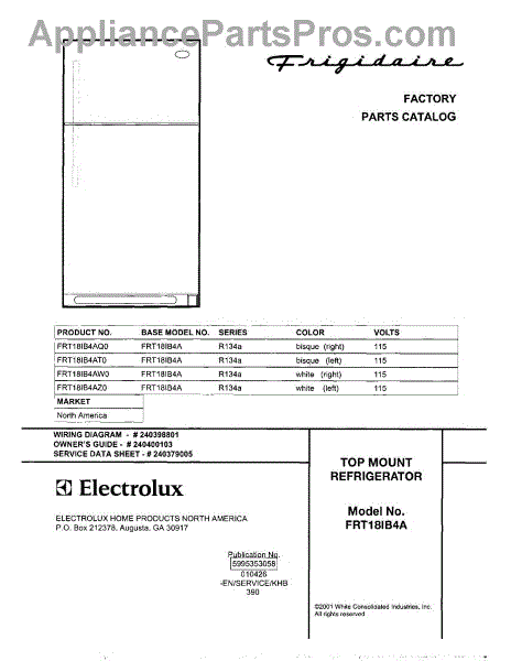 Parts for Frigidaire FRT18IB4AZ0: 01 - Cover Parts