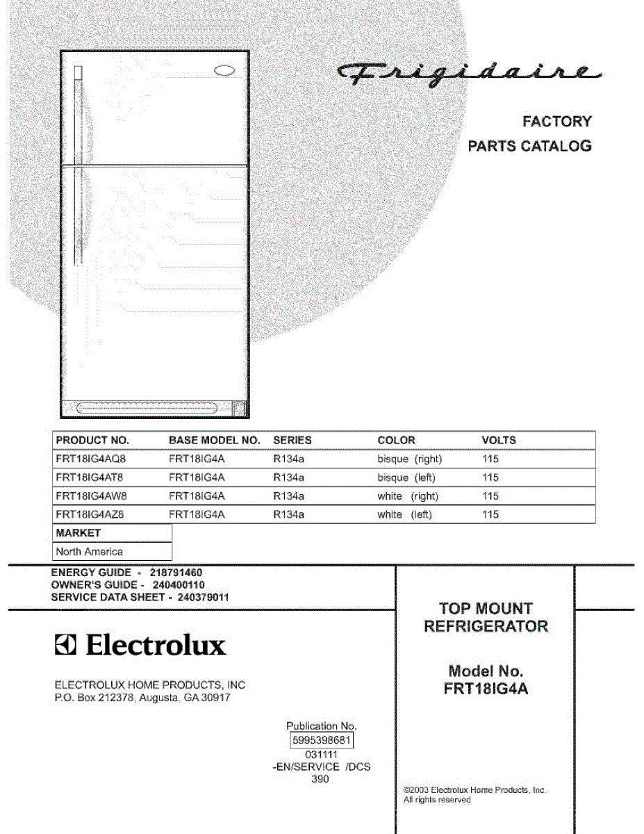 Parts for Frigidaire FRT18IG4AT8: 01 - Cover Parts