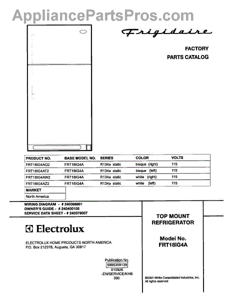 Parts for Frigidaire FRT18IG4AW2: 01 - Cover Parts