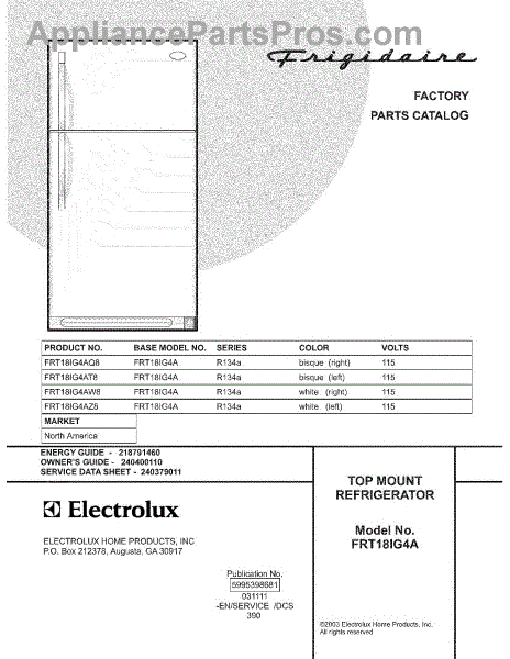 Parts for Frigidaire FRT18IG4AW8: 01 - Cover Parts