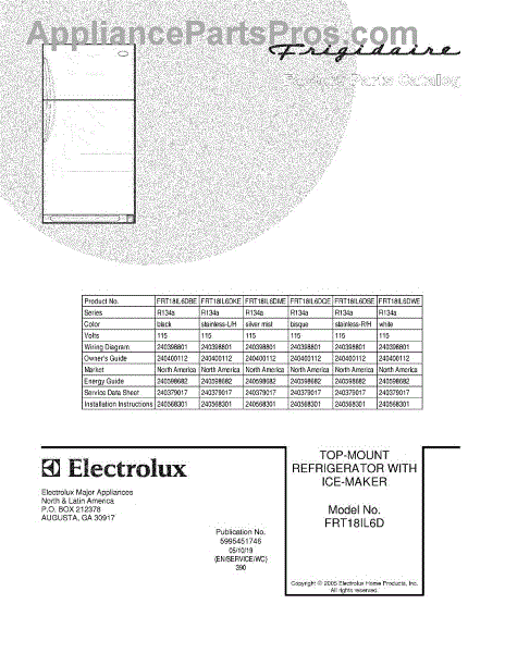 Parts for Frigidaire FRT18IL6DBE: 01 - Cover Parts